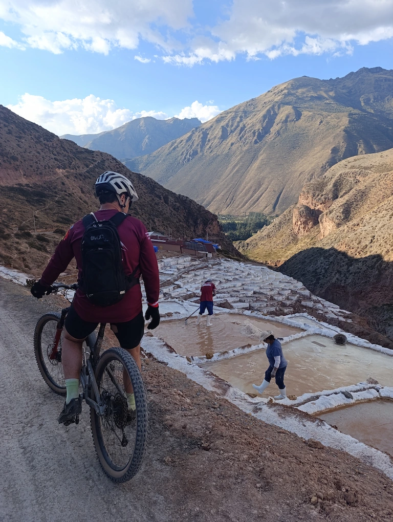 Nuestro recorrido comienza con una visita a los centros textiles de chinchero donde las señoras nos mostraran como están recuperando técnicas ancestrales para el teñido de la fibra de alpaca. Luego de este momento cultural comenzamos nuestra aventura en bici, una carretera que sube y baja nos lleva hasta el pueblo colonial de maras, un pueblo muy tradicional donde se puede ver a la gente local en su vida cotidiana; luego nos preparamos para nuestro descenso hacia las minas de sal que aún siguen en funcionamiento por las 1500 años. Terminamos en Ollantaytambo.